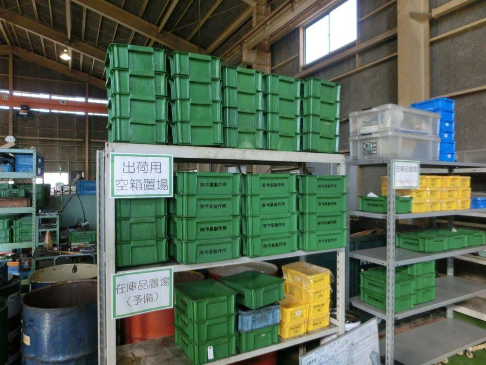 梱包が終わった製品は納期に従い出荷されます。次回発注が見込める端数分は在庫置き場に表示付きで保管されます。